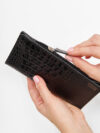 Стильный кожаный черный кошелек — это незаменимый аксессуар для хранения наличных денег для мужчин и женщин. Он изготовлен из натуральной кожи высокого качества, поэтому отличается прочностью и долговечностью, а фактура материала мягкостью на ощупь. При компактных размерах внутри поместится все необходимое: в два больших отделения вместятся наличные купюры, маленькое отделение на молнии подойдет для монет мелочи, а мини прорези помогут разместить банковские карты. При своей вместительности он достаточно тонкий и прекрасно поместится в небольшую сумочку или карман верхней одежды. Имеет скрытую магнитную застежку, которая обеспечивает надежное хранение содержимого и подчеркивает лаконичность изделия. Особенностью модели бренда Smart Folder является минимализм, практичность и функциональность. Идеальный аксессуар из нашей коллекции будет радовать вас долгие годы!